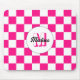 Chequered Hot pink white geometric retro Monogram Mouse Pad
