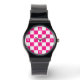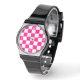 Chequered squares hot pink white geometric retro pattern Wrist Watch. Fashion Accessory gift for her. Cool retro chequered geometric square pattern. Vintage tile white and hot pink modern chequered.