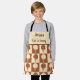 This is custom name personalized apron for kids and young chefs featuring cute chequered simple vanilla and chocolate ice cream cones pattern on cream and brown checkerboards. It's perfect gift for kids who love ice cream