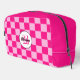 Chequered light hot pink geometric retro Monogram Dopp Kit