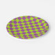 Abstract digital art of lime green and purple coloured squares in a chequered formation.