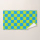 Abstract digital art of lime green and turquoise squares in a chequered formation.