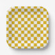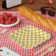 Abstract digital art of mustard yellow and white squares in a chequered formation.