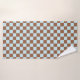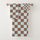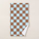 Abstract digital art of pastel blue and brown squares in a chequered formation.