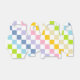 Abstract digital art of white and pastel coloured squares in a chequered formation.