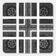 Floral/Star Motifs: The small white designs within some black squares resemble flowers or stars, introducing a subtle organic element that contrasts with the geometric focus.