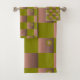 Chequered pattern in brown and olive green bath towel set
