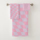 Chequered Pattern Lilac Pink Check Chequerboard Bath Towel Set