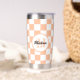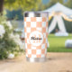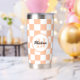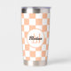 Chequered peach and white geometric retro Monogram Insulated Tumbler