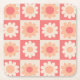 Chequered Peach Fuzz Retro Flowers Pattern Square Paper Coaster