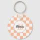 Chequered peach white geometric retro Monogram keychain. Accessories gift for her. Cool retro chequered geometric square pattern. Vintage tile peach white modern chequered. Personalize with your custom initial and name.