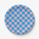 Abstract digital art of pink and turquoise squares in a chequered formation.