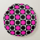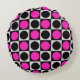 Chequered Pink Black Circle Pattern Design Round Pillow