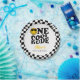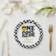 Chequered yellow preppy smile one cool dude 1st birthday paper plate.