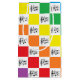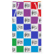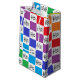 Abstract digital art of white and outlined rainbow coloured squares in a chequered formation with a treble clef, staff and a few musical notes inside each one.
