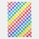 Abstract digital art of white and rainbow coloured squares in a chequered formation.