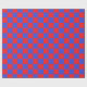 Abstract digital art of red and blue squares in a chequered formation.