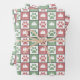 Chequered Red and Green paw print Christmas Tree Wrapping Paper Sheet