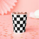 Chequered squares black and white geometric retro pattern Paper Cup. Party Supplies Tableware for birthday Table. Chequered squares black and white geometric retro pattern for anyone. Cool retro chequered geometric square pattern design. Vintage tile black and white modern chequered.