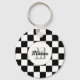 Chequered squares black and white retro Monogram keychain. Accessories gift for her. Cool retro chequered geometric square pattern. Vintage tile black white modern chequered. Personalize with your custom initial and name.