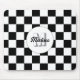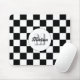 Chequered squares Black and White retro Monogram Mouse Pad. Chequered squares Black and White geometric retro pattern gift. Cool retro chequered geometric square pattern design. Vintage tile modern chequered. Personalize with your custom initial and name.