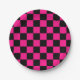 Party Supplies Tableware Paper Plates Chequered squares hot pink black geometric retro pattern gift for her. Cool retro chequered geometric square pattern. Vintage tile black and hot pink modern chequered.