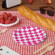Chequered squares hot pink white geometric retro paper plate