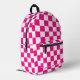 Chequered squares hot pink white geometry Printed Backpack. Cool fashion accessory bag for her. Cool retro chequered geometric square pattern. Vintage tile white and hot pink modern chequered. Create a unique and personalized backpack with a custom touch!