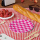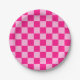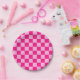 Chequered squares light hot pink geometric retro paper plate