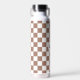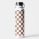 Chequered squares mocha brown white retro Monogram Insulated Water Bottle. Chequered geometric retro pattern Water Bottle. Practical gift for active person. Cool retro chequered geometric square pattern. Vintage tile modern chequered. Personalize Monogram with your custom initial and name.