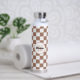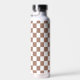 Chequered squares mocha brown white retro Monogram Water Bottle
