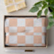 Chequered squares peach orange white geometric retro pattern. Cool retro chequered geometric square pattern. Vintage tile white and peach light orange modern chequered.