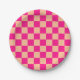 Chequered squares peach orange hot pink geometric retro pattern Paper Plates. Cool retro chequered geometric square pattern. Vintage tile pink and peach light orange modern chequered.