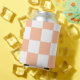 Chequered squares peach orange white geometric can cooler