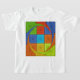 The central portion features a grid or chequerboard pattern composed of squares in red, golden yellow, green, and cyan.