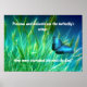 Beautiful picture of a blue butterfly flying in a wheat field is featured on this poster. Message asks, "Precious and delicate are the butterfly's wings. How more cherished are souls by God"? A lovely poster to keep yourself or give as an inspirational gift.