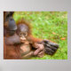 In a vibrant setting, an orangutan mother tenderly holds her baby, framed by lush greenery. The adorable infant's eyes sparkle with innocence, adding to the charm of this heartwarming scene of maternal love amidst nature's embrace.
