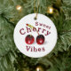 Radiate fun and playful energy with this cherry ornament. This unique design features tones of scarlet, blush, violet, chartreuse. It is easy to change the text to personalize. I created this pattern from an image in my original acrylic painting.