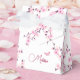 This custom birthday favour box features pretty pink cherry blossom branches on a white background. Add a name in an elegant calligraphic script.