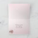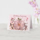 This birthday card features a single exquisite pale pink cherry blossom bathed in a rosy glowing light, surrounded by distant blossoms. Another flower is inside on a pastel pink gradient. All text can be customized to suit your needs.