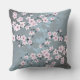 Cherry Blossom Dusky Pink Grayish Blue Floral Throw Pillow