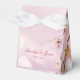 Ballotins de mariage élégants en fleur de cerisier avec texte changeant - vous pouvez ajouter le nom des mariées et des mariées et la date mariage, imprimé sur arrière - plan rose