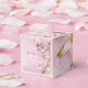 Cherry blossom elegant wedding favour box with changeable text - you can add brides and grooms name and wedding date, printed on pink background