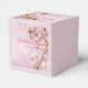Cherry blossom elegant wedding favour boxes with changeable text - you can add brides and grooms name and wedding date, printed on pink background