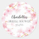 Pretty bridal shower favour seal featuring pink watercolor cherry blossoms set on a fresh white background