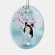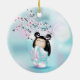 Cherry Blossom Kokeshi Doll Pink Turquoise Ceramic Ornament