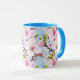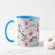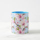 A combo mug adorned with delicate cherry blossom branches in soft pinks and greens on a serene blue background, bringing an elegant, calming touch to morning coffee or tea. A refined, gift‑ready choice for nature lovers and fans of graceful floral design.