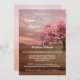 Bridal shower invitation featuring a fantasy landscape painting with a blossoming cherry tree. Beautiful for an orchard wedding or Japanese style celebration.