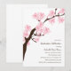 This cherry blossom party invitation features a branch of pink cherry blossoms on the left side of the card while the party details are displayed on the right in brown. Text fields are customizable - invitation can be used for any occasion.