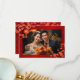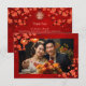 This Chinese wedding thank you card features red cherry blossoms an gold double happiness sign and "thank you" words in a classic script on a red shimmering background. With a custom wedding thank you text, your photo and your names and wedding date.